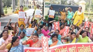 Mid-day meal workers stage dharna seeking budget relief